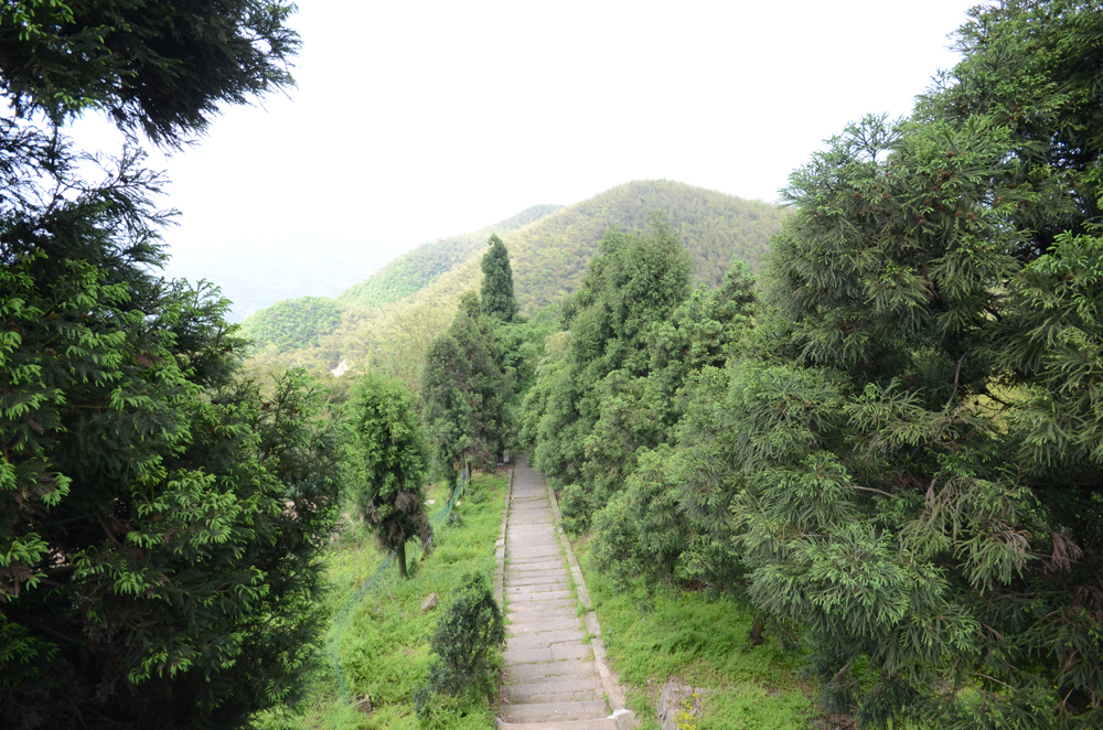 黑麋峰主峰590.5米,通向山頂的道是一條蜿蜒曲折的石階,山陡之處接近45°。對于年輕的小伙子們來說,可應付自如,可對于均年齡在50歲左右的阿姨們來說,卻是不小的難度。